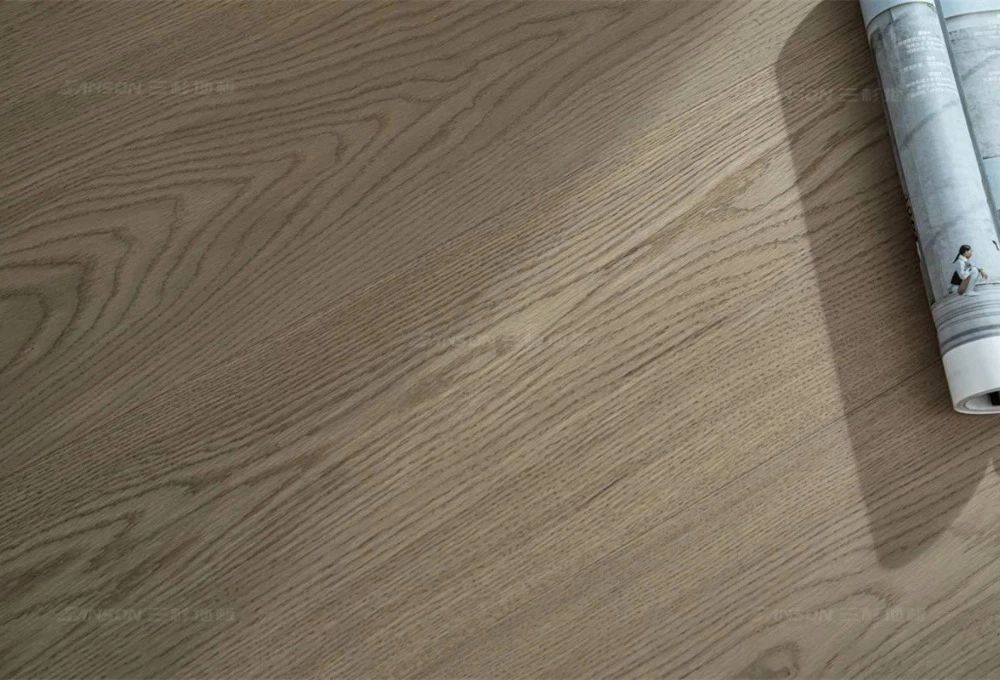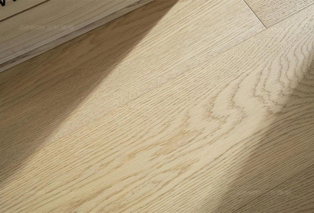 拉丝工艺:搭配上精湛的拉丝工艺,为地板表面增添了微妙的肌理感与光影变化。这使得三杉全桦地板完美适配时下流行的奶油风、极简风等潮流家居风格。无论是营造温馨浪漫的奶油色调,还是追求纯粹简约的极简美学,它都能成为空间中那一抹低调而高级的亮点,为你的家注入灵魂。